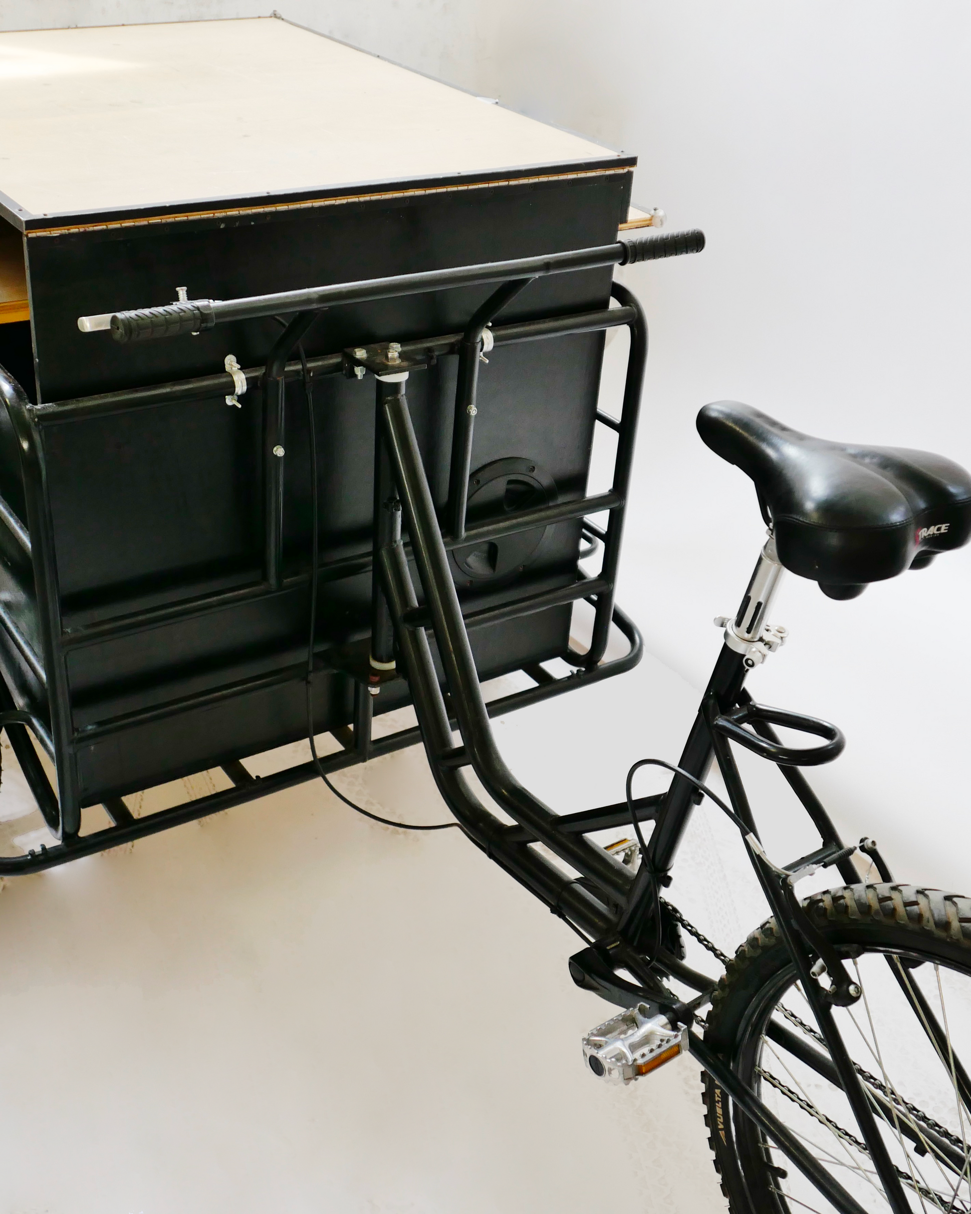 Ampio Piano di Lavoro: La bicicletta è dotata di un piano d’appoggio in legno con apertura a libro che aumenta lo spazio di lavoro di oltre il 50%.