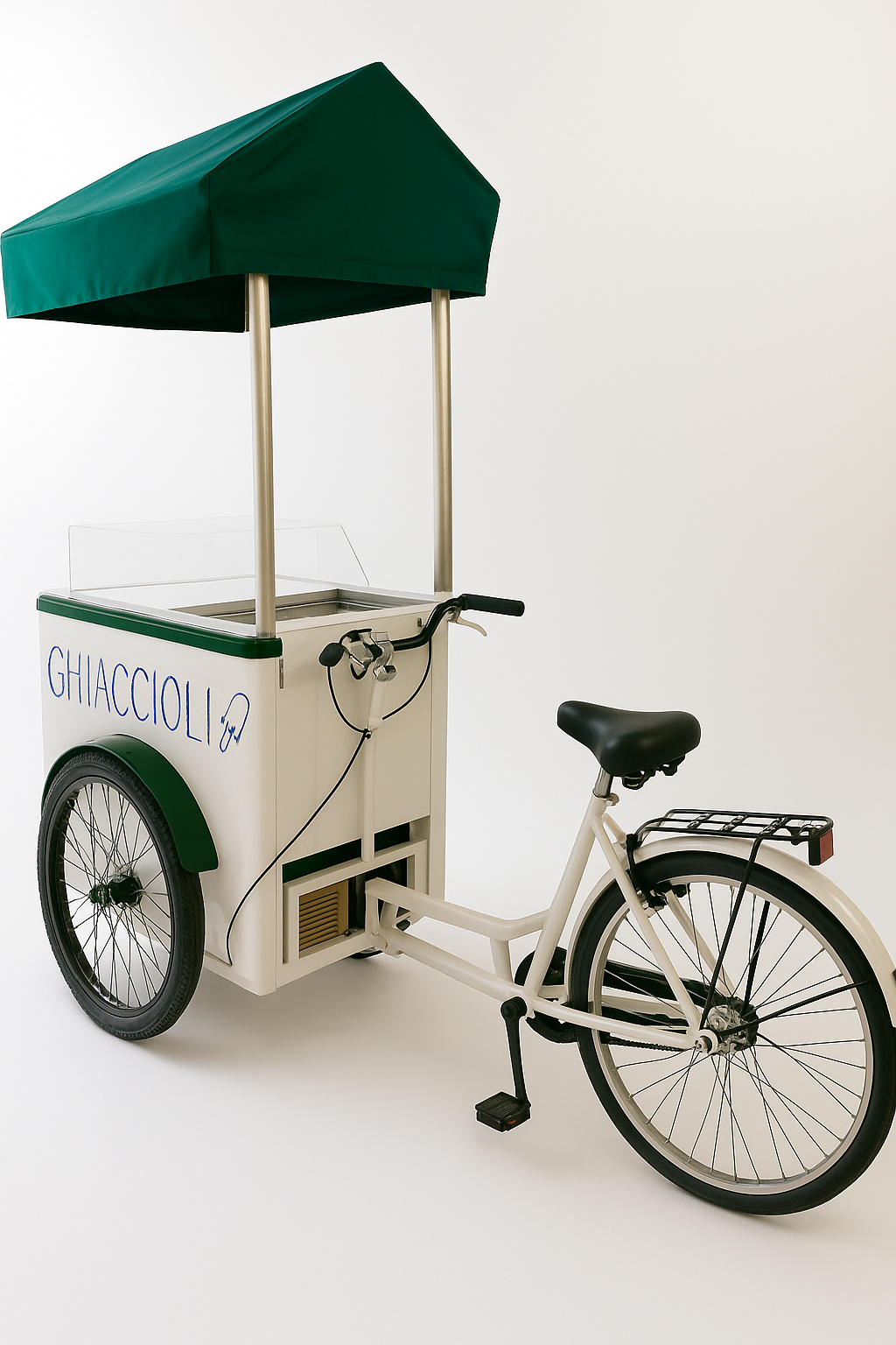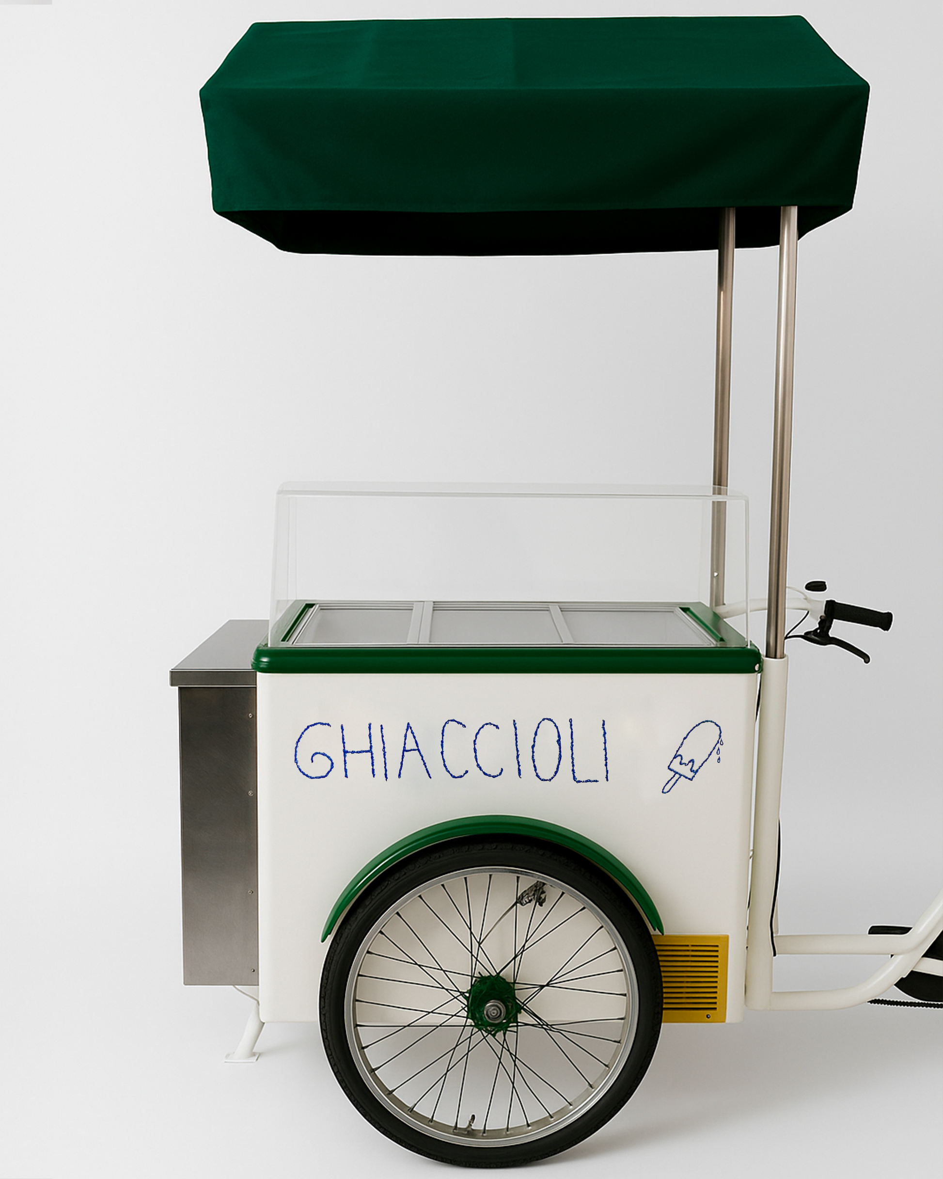 Ice Cube è la soluzione perfetta per ogni attività commerciale estiva. Questo mezzo multifunzionale è dotato di una vasca refrigerata, chiusa da coperchi di plastica scorrevoli, ideale per mantenere freschi i tuoi prodotti. Il piano di appoggio è fornito di uno schermo in plexiglass trasparente che separa l’area di lavoro dai clienti, garantendo protezione igienica.